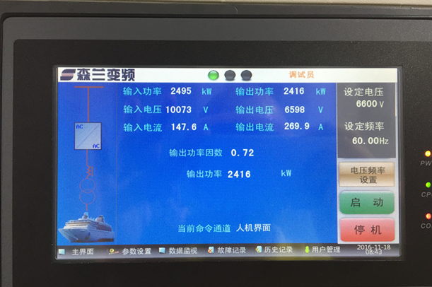 我國供電電網送到用戶端的電源電壓等級一般為10kV,50Hz的高壓電,電源送入森蘭VFPS系列岸電電源系統后,經高壓變頻裝置轉換為6kV 50Hz 或6.6kV,60Hz的船用電直接輸出。