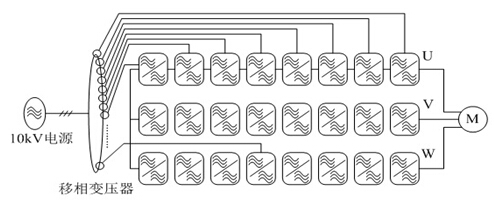 SBH系列高壓變頻器采取的拓撲結構方式為單元串聯型高壓變頻器,其為直接高-高變換電壓源型,變頻器基本原理如下圖2所示: