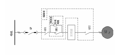 限流柜由高壓真空接觸器KM1與充電電阻R組成,限流電阻實現對變頻器電容軟充電,使上電過程中對電網無沖擊。
