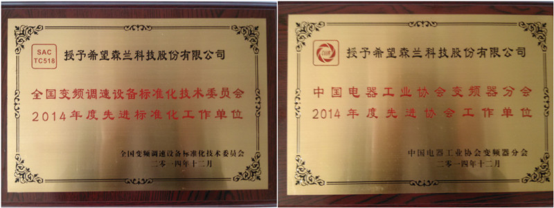會議表彰了變頻器分會及標委會年度先進工作單位,希望森蘭科技股份有限公司榮獲“2014年度先進協會工作單位”和“2014年度先進標準化工作單位”兩項殊榮。同時,希望森蘭的SBH系列高壓變頻器和SB70高性能矢量控制變頻器榮獲中國電器工業協會“質量可信產品”榮譽。多年以來,希望森蘭作為變頻器分會的會員,認真履行會員職責,主動參與協會建設,積極參加各項活動,保證協會各項建設深入扎實地開展。